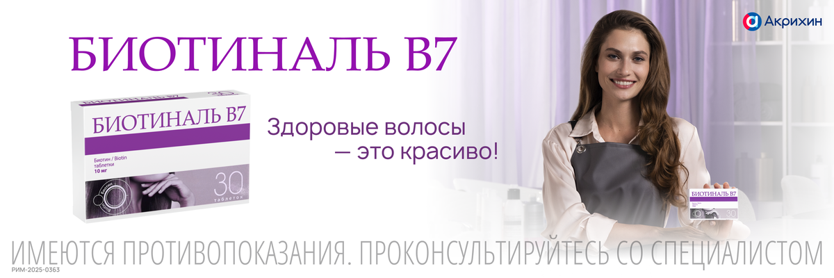 В арсенале современных специалистов есть специализированные лекарственные препараты, например, Биотиналь B7. Биотиналь – это единственное лекарственное средство с активным D-биотином — более усваиваемой формой биотина [12,15,16]. Биотиналь помогает бороться с выпадением волос, стимулирует их рост и улучшает качество — этот результат будет заметен примерно в течение первого месяца применения [13].